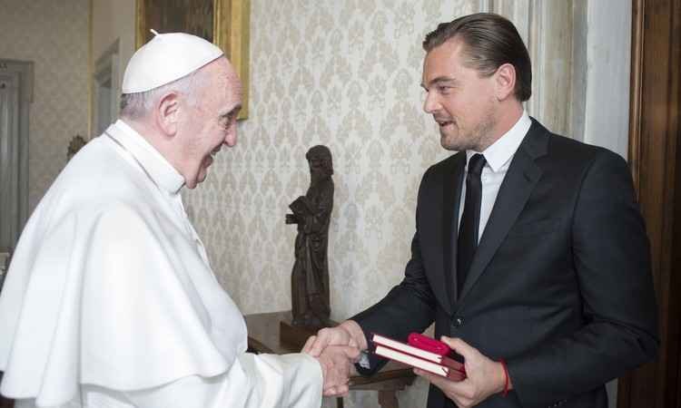 Em 1998, DiCaprio lançou uma fundação com seu nome para apoiar iniciativas dirigidas à sustentabilidade. Recentemente, ofereceu uma conferência no Fórum Econômico Mundial, em Davos, para anunciar que a fundação dedicaria US$ 15 milhões a projetos de meio ambiente e a pedir que os governos trabalhem para combater as mudanças climáticas. No encontro desta quinta-feira, o ator entregou um cheque da Fundação Leonardo DiCaprio para o papa usar em ações de caridade. Fonte: Associated Press.